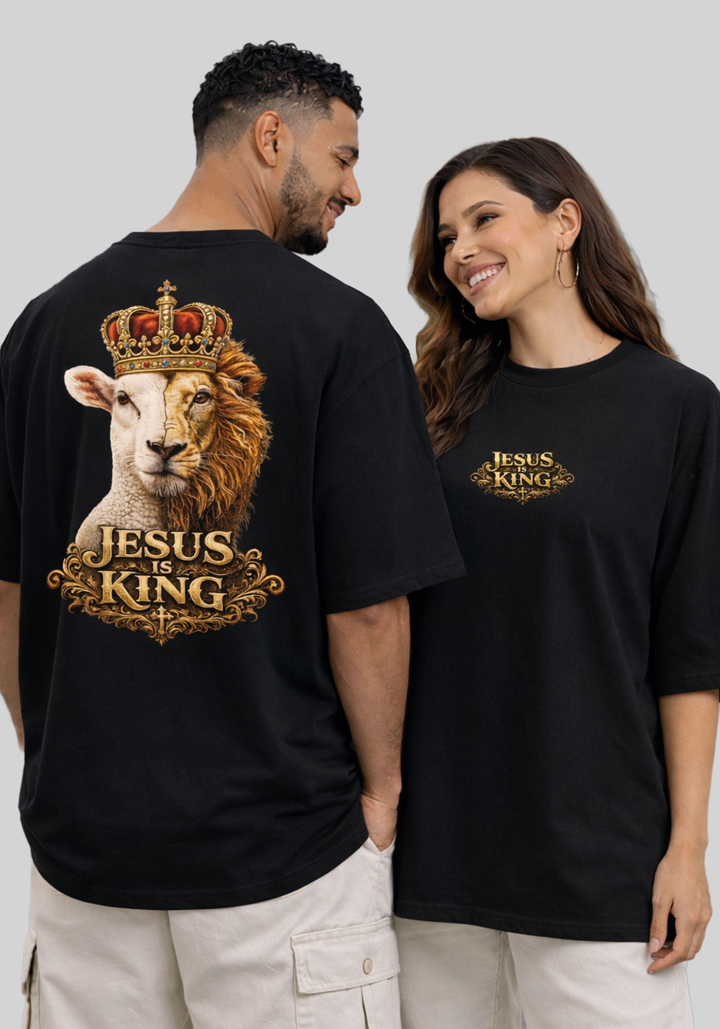 OVERSIZED - OVELHA JESUS IS KING - COR PRETO