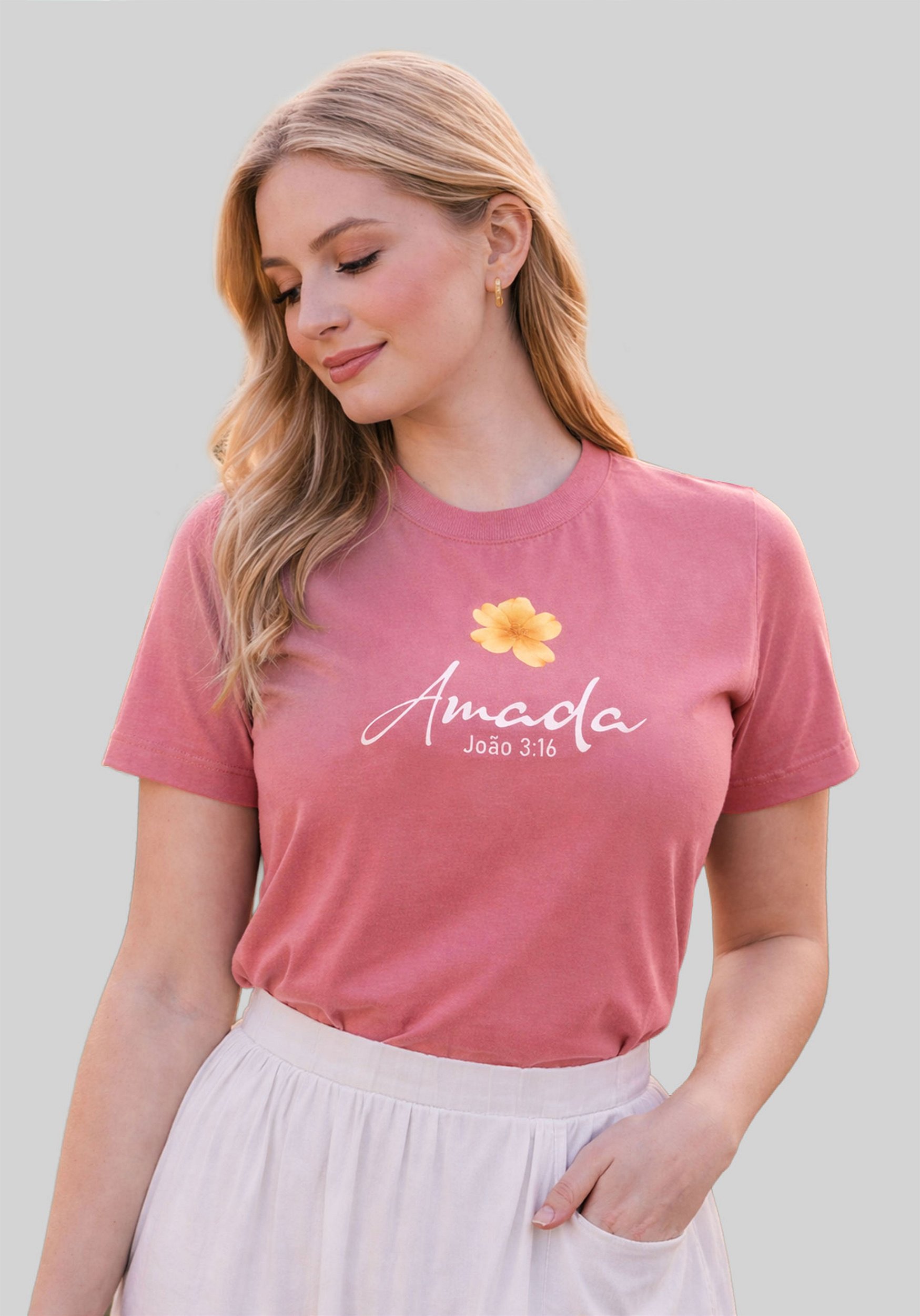 T-SHIRT FEMININA - AMADA JOÃO 3:16 - COR ROSA BATOM