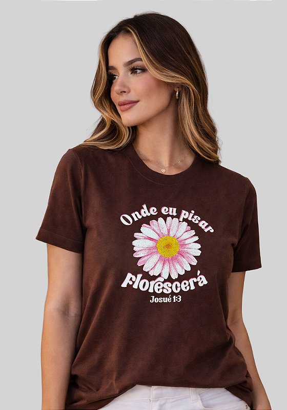 T-SHIRT FEMININA -ONDE EU PISAR FLORESCERÁ - COR MARROM