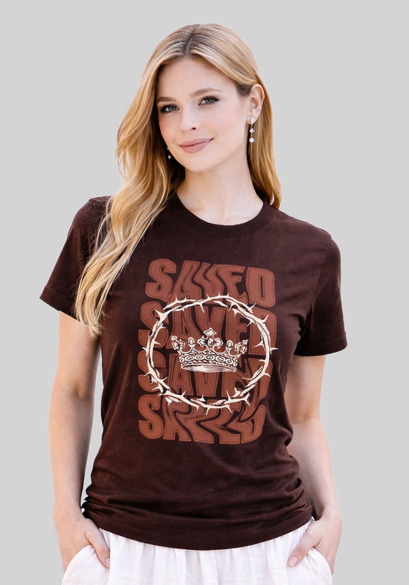 T-SHIRT FEMININA - SAVED COROA - COR MARROM