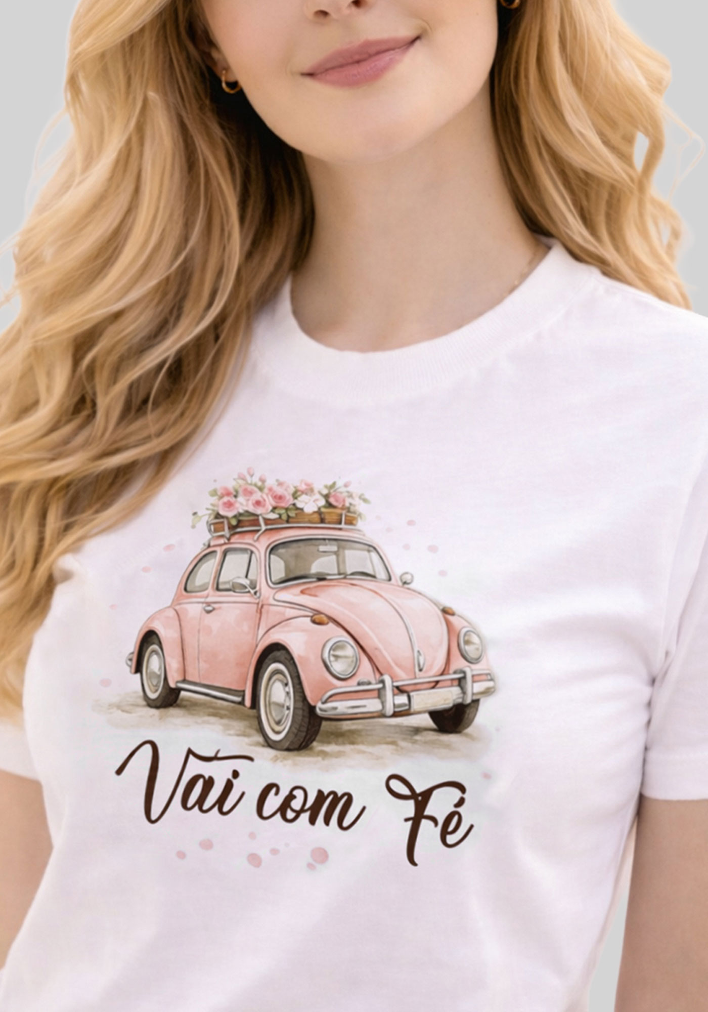 T-SHIRT FEMININA - VAI COM FÉ- COR MARFIM